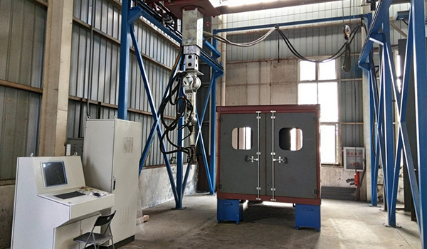 設(shè)備由室體、龍門行走機構(gòu)、噴砂機器人、三維作業(yè)車、回收系統(tǒng)、除塵系統(tǒng)、送風(fēng)/回風(fēng)系統(tǒng)、照明系統(tǒng)、電氣控制系統(tǒng)等組成