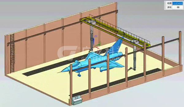設備由介質輸送系統(tǒng)、介質回收系統(tǒng)、介質分離系統(tǒng)、全室除塵系統(tǒng),以及機器人系統(tǒng)、工裝輸送系統(tǒng)、安全系統(tǒng)、供氣保障系統(tǒng)等組成
