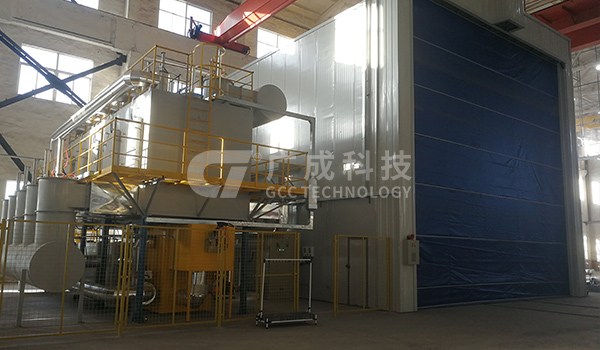 設備由介質輸送系統(tǒng)、介質回收系統(tǒng)、介質分離系統(tǒng)、全室除塵系統(tǒng),以及機器人系統(tǒng)、工裝輸送系統(tǒng)、電控系統(tǒng)等組成