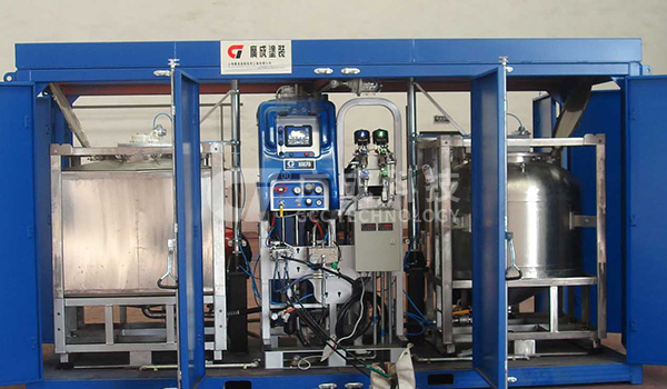 設(shè)備集成雙組分噴漆泵、輸送泵、涂料周轉(zhuǎn)箱、攪拌器等并置于集裝箱內(nèi)