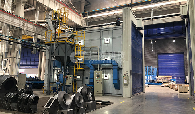 配套雙缸四槍噴砂系統(tǒng)、分段回收系統(tǒng)、地坑回收系統(tǒng)、二級除塵系統(tǒng)、除濕系統(tǒng)、新風過濾系統(tǒng)、廢氣處理系統(tǒng)和中央集控系統(tǒng)