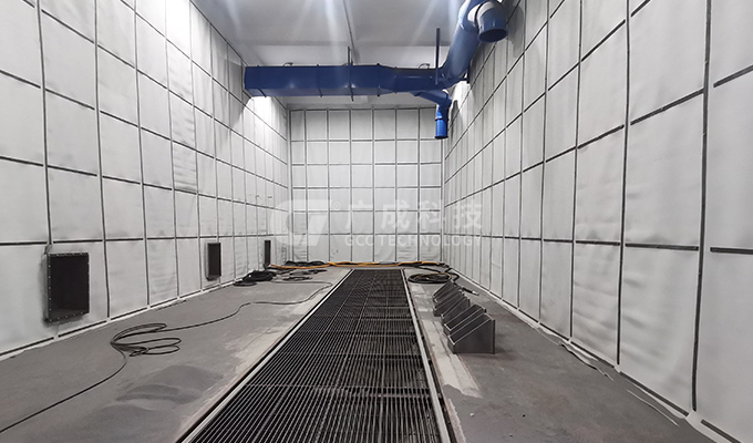 配套噴砂系統(tǒng)、分段回收系統(tǒng)、地坑回收系統(tǒng)、除塵系統(tǒng)、除濕系統(tǒng)、廢氣處理系統(tǒng)、柔性大門(mén)及電控系統(tǒng)等